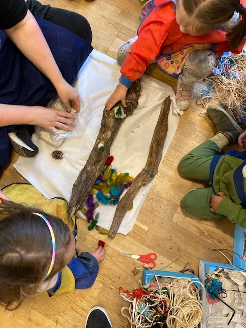 - Story sticks- using sticks to paint and add materials to to create landscapes/characters.